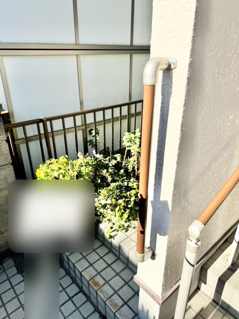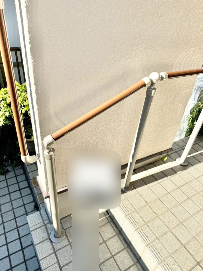 今回は、玄関へと続く外階段に横手すりを設置し、登り口に縦手すりを取り付ける工事を行いました。